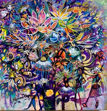 I paint with childlike delight and curiosity, while focusing on inner strength. My soulful healing paintings are embedded with joy, love, and grace.